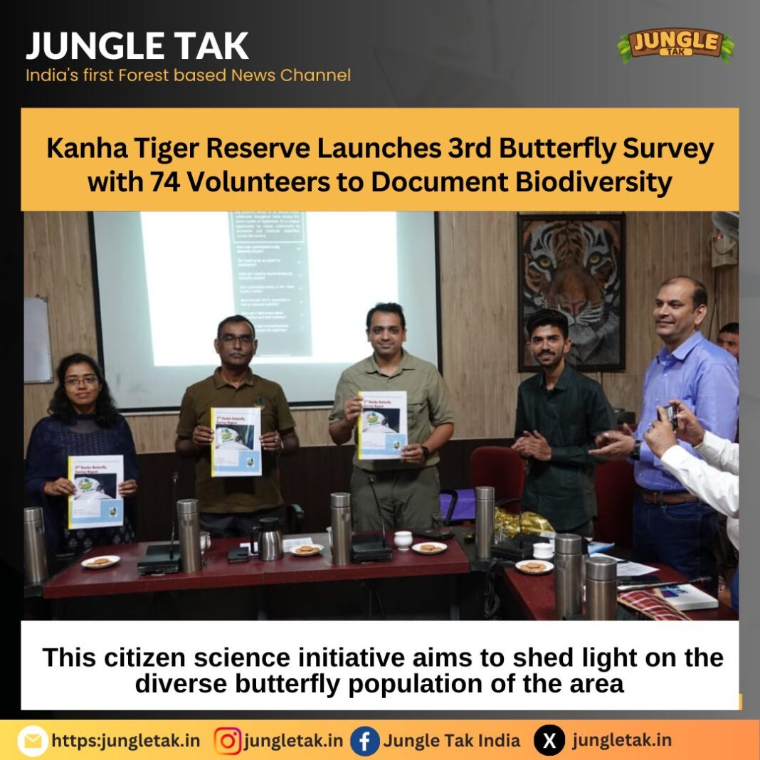๐๐ฎ๐ป๐ต๐ฎ ๐ง๐ถ๐ด๐ฒ๐ฟ ๐ฅ๐ฒ๐๐ฒ๐ฟ๐๐ฒ, ๐ข๐ฐ๐๐ผ๐ฏ๐ฒ๐ฟ ๐ฎ๐ฌ๐ฎ๐ฐ: In an exciting effort to document the remarkable butterfly species in one of Indiaโs most biodiverse regions, Kanha Tiger Reserve has kicked off its 3rd Butterfly Survey. A team of 74 enthusiastic volunteers from across India has gathered to participate in the three-day event, covering 38 campsites throughout the reserve.