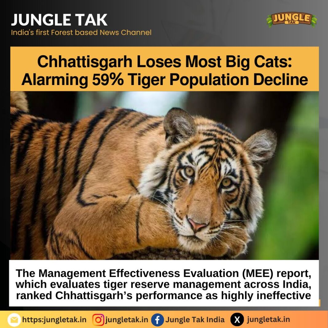 The Management Effectiveness Evaluation (MEE) report, which evaluates tiger reserve management across India, ranked Chhattisgarh’s performance as highly ineffective. Key reasons include lack of trained manpower, biotic interference in core areas, poor infrastructure, and a general lack of monitoring and time management actions by the authorities. While Kerala leads the performance scale with 82%, Chhattisgarh lags at the bottom with just 45.62%.