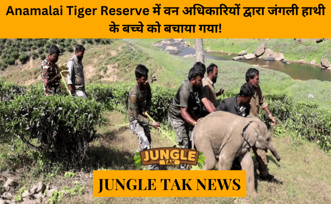 एक जंगली हाथी का बच्चा जो एक निजी भूमि पर भटक रहा था और अपने झुंड से अलग था, उसे Anamalai Tiger Reserve (ATR) में वन अधिकारियों द्वारा बचाया गया था।