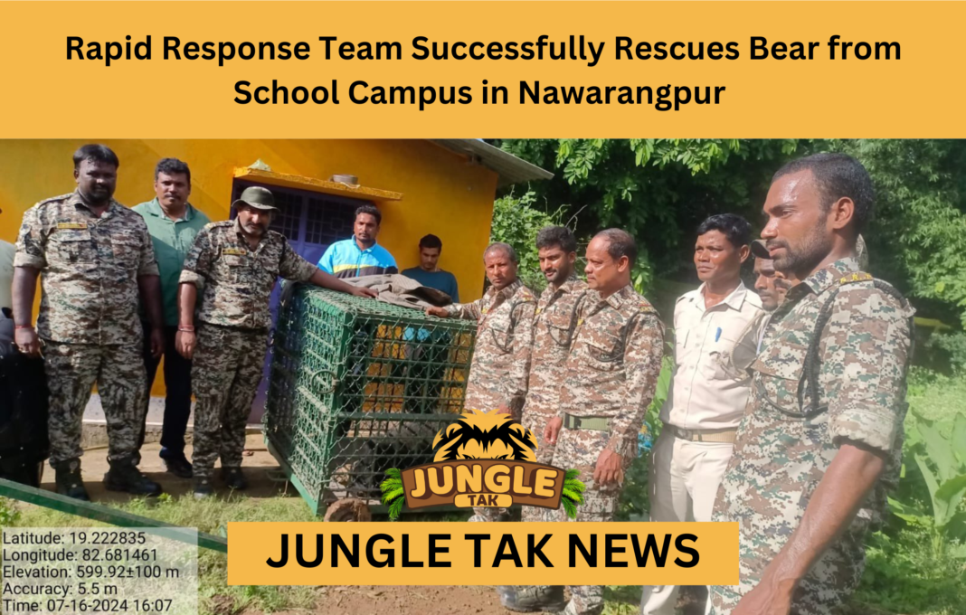 A bear that wandered into a school campus in Nawarangpur was safely rescued and released back into the wild, thanks to the swift and skilled actions of the Rapid Response Team. The successful operation underscores the dedication and expertise of local wildlife officers in managing human-wildlife conflicts.