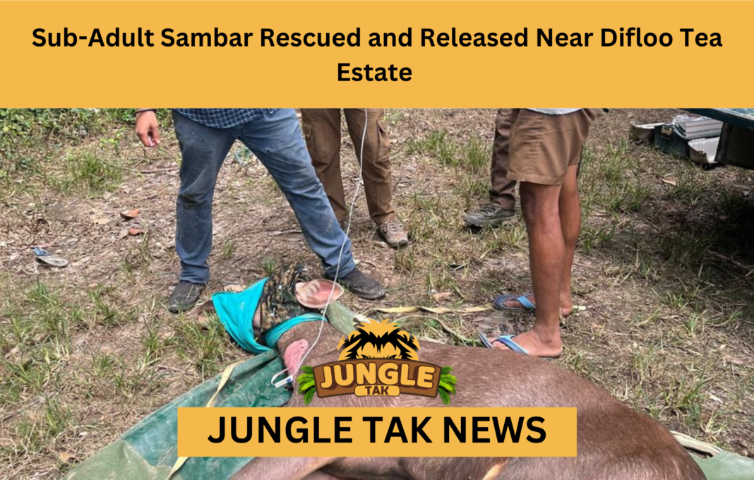 A male sub-adult Sambar deer was successfully rescued from a drain near Difloo Tea Estate, marking another success for wildlife conservation efforts in the region. The rescue operation, carried out by local wildlife authorities and volunteers, highlights the ongoing commitment to protecting the area’s diverse fauna.