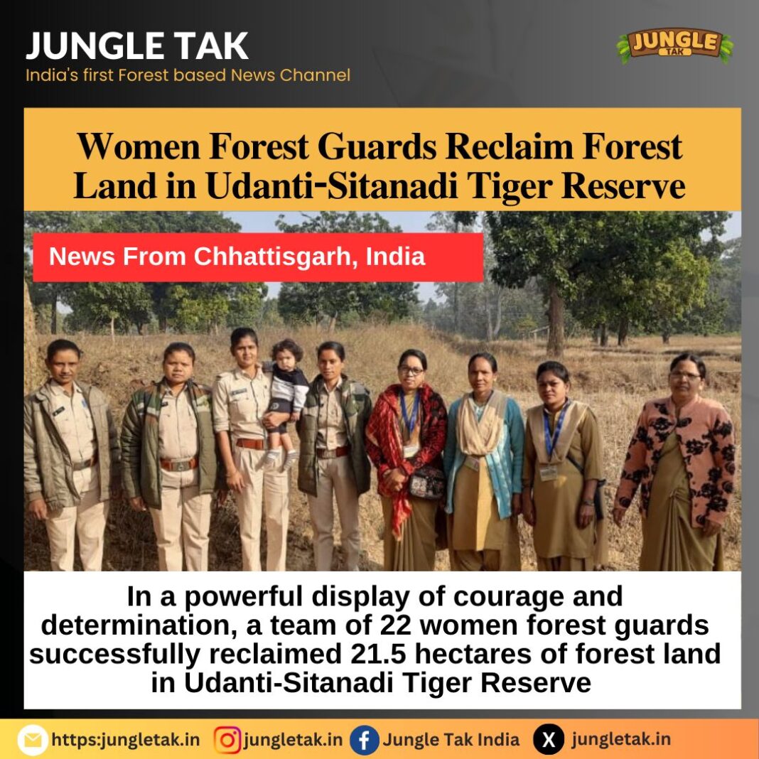 In a powerful display of courage and determination, a team of 22 women forest guards successfully reclaimed 21.5 hectares of forest land in Udanti-Sitanadi Tiger Reserve (USTR) in Chhattisgarh’s Gariaband district from encroachers. These women, handpicked from three forest divisions — Dhamtari, USTR, and Gariaband — were specifically chosen for this task after male guards faced challenges due to prior false allegations raised by villagers.
